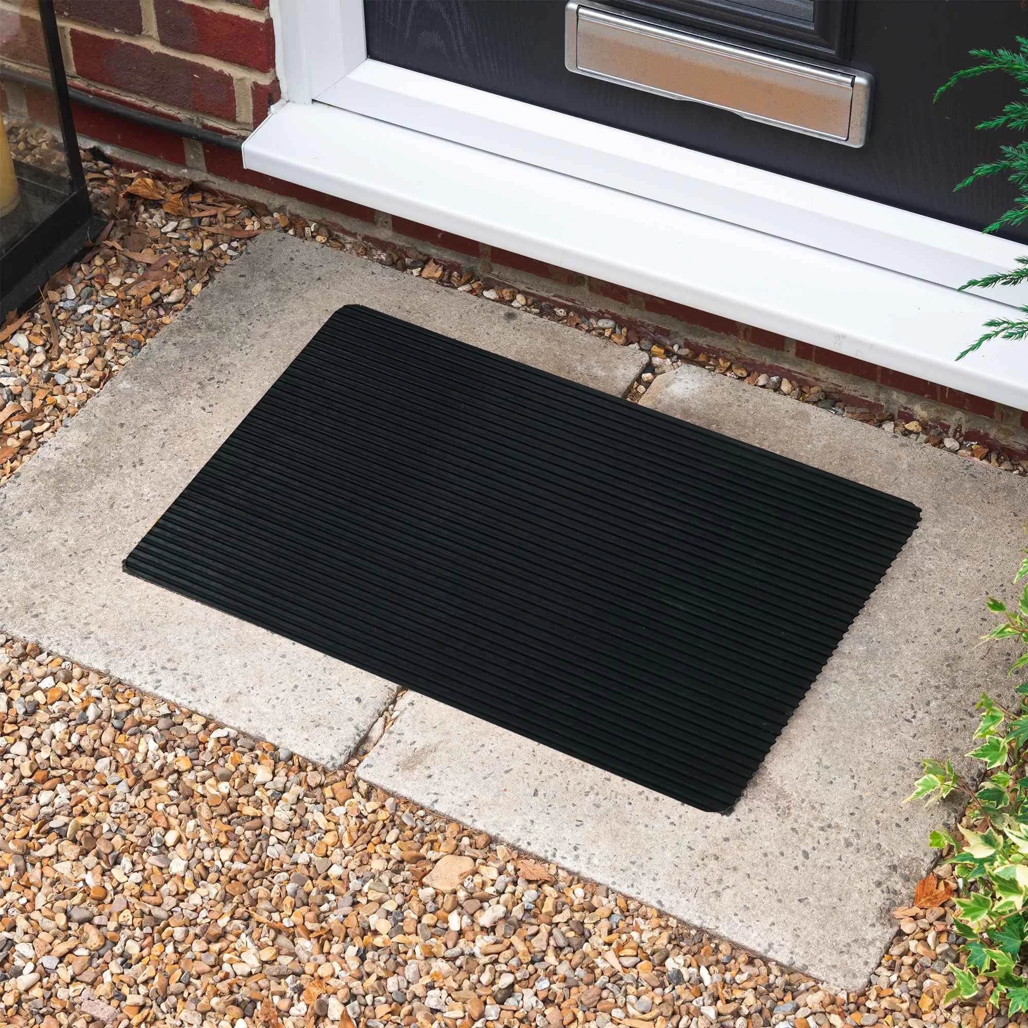 Derin şeritli tasarımıyla toz, çamur ve nemi etkili şekilde temizleyen lastik kapı önü paspası, birinci sınıf kauçuk mamülden üretilmiştir. Kaymaz tabanı sayesinde güvenli kullanım sağlar.